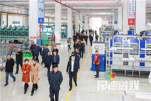 考察团在站成运动科技,视察产品展厅和鞋材生产项目