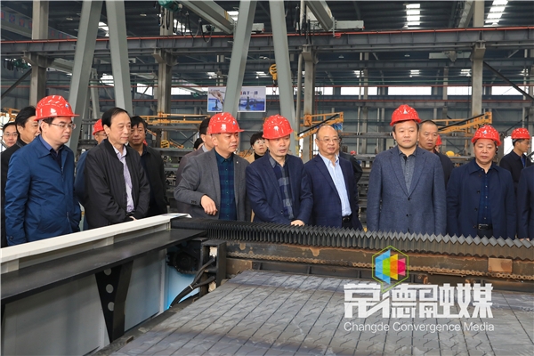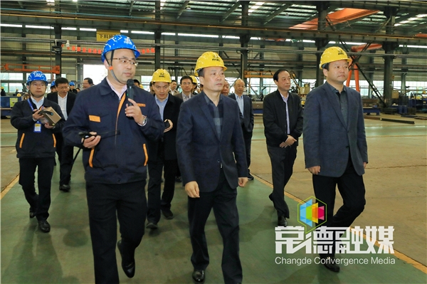 考察团一行在常德高新区工程机械配套产业园,视察荣泰机械产品生产项目